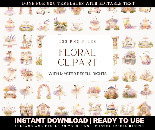 Done For You 105 PNG Floral Clipart Bundle With Resell Rights (PLR & MRR)