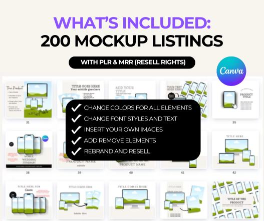 Done for you 200 Mockup Listing Templates with Master Resell Rights | Etsy Listing Mockups | PLR Digital Products | PLR + MRR | Etsy Shop Template | Canva Templates | Done For You.