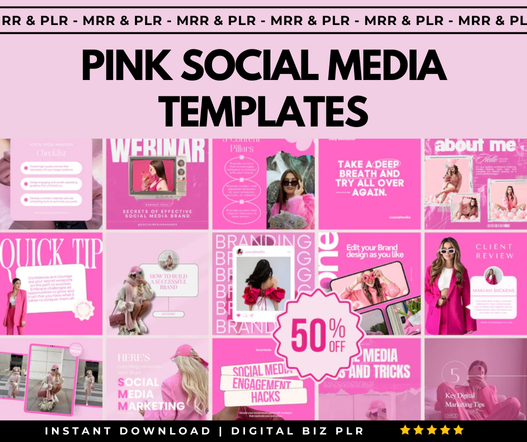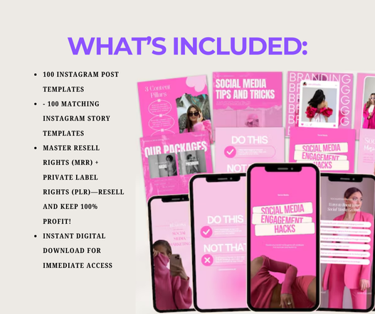 - 100 Instagram Post Templates: Beautifully designed in pink, perfect for sharing quotes, promotions, tips, and more.