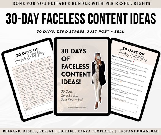30 Days of Faceless Content Calendar – Post Ideas, Hooks & Captions That Sell