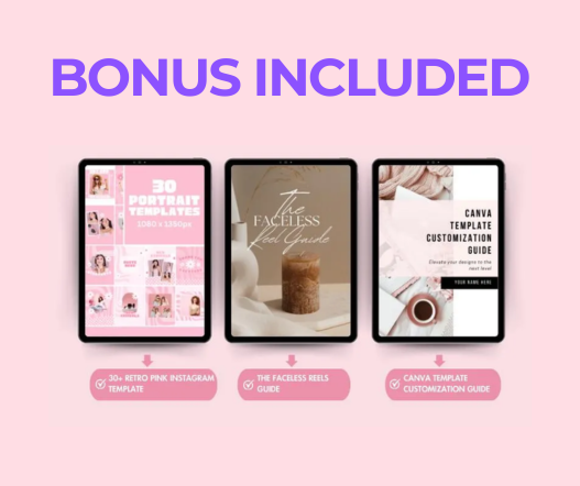 ✔ Bonus: Faceless Marketing Guide - 30+ Retro Pink Instagram post Editable in Canva - Canva Template Customization Guide