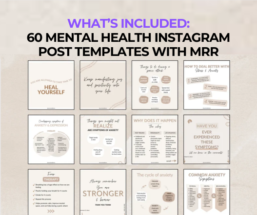 Introducing the Mental Health Instagram Post Templates that will help grow your self-care, mental health, or anxiety-awareness Instagram account! This digital product includes 60 mental health Instagram posts that you can edit (change color, font, wording, etc.) that you can use for Instagram account. AND this bundle comes with Master Resell Rights (MRR) so you can use and resell to others for 100% profit!