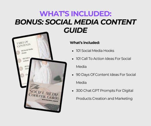 The bonus is the Social Media Content Guide. This ebook is an ideal lead magnet or low-ticket digital product for your digital product store.