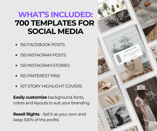 Are you interested in starting digital marketing without needing to create content from scratch? If so, this BUNDLE of 700 Social Media Templates for digital marketing is exactly what you need. Plus, it includes MRR and PLR, giving you the freedom to resell the content as you please.