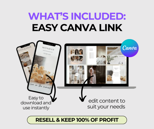 - Edit, tweak and customise in Canva, export as PDF and start selling as your own with no attribution required