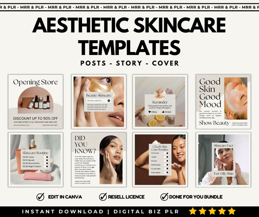 Done For You Skincare Social Media Templates With Resell Rights.