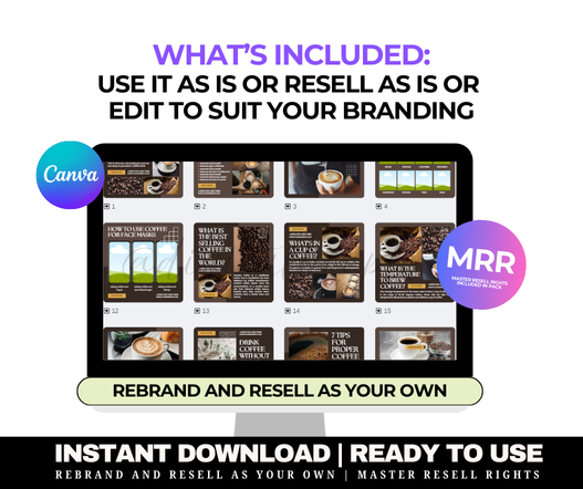 This digital product comes resell rights which means you can rebrand and resell this product as your own and keep 100% of the profits. Please check individual listings to see if they come with MRR or PLR