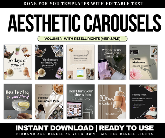 DONE FOR YOU Aesthetic Instagram Carousel Templates with Resell Rights (MRR & PLR) - VOLUME 1