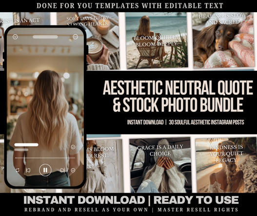Introducing the Aesthetic Neutral Quote & Stock Photo Bundle—your all-in-one solution for building a soulful, on-brand social presence that attracts your dream audience.