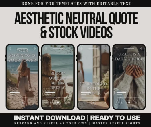 Aesthetic Neutral Reels Video Bundle | 20 Editable Instagram Reels | PLR + MRR
