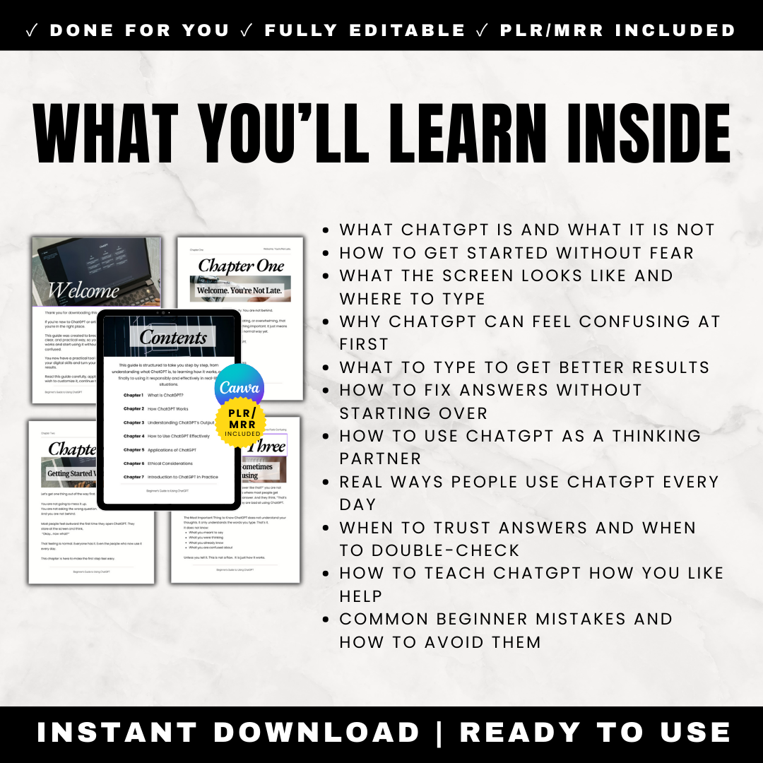 Whether you’re a complete beginner, a professional curious about AI, or a business owner who wants a ready-to-use digital product, this guide walks you step by step through how ChatGPT works and how to use it in real life.