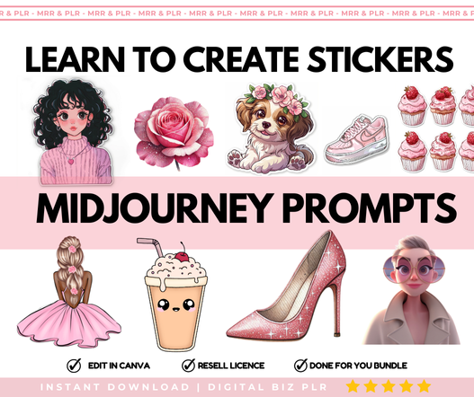 Enhance your digital product offerings with MRR Stickers and Midjourney Prompts, designed to enhance your Digital Planner Sticker Business. With Master Resell Rights and Done For You PLR Digital Products, these AI prompts, and business templates provide everything you need to succeed in the digital marketplace.