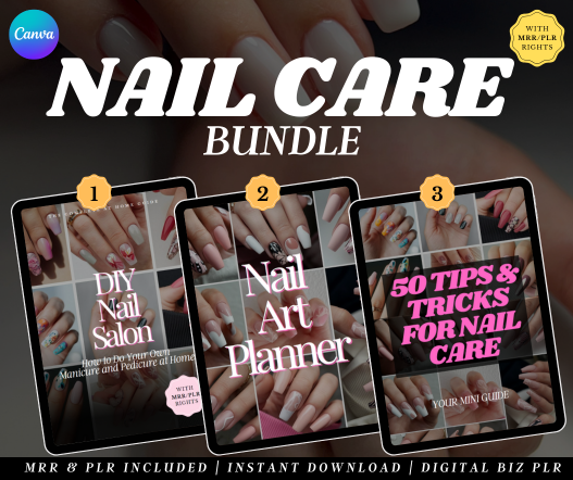 Discover the ultimate guide to nail care and manicures with our **PLR and MRR bundle**. This comprehensive bundle offers invaluable tips and techniques, perfect for both beginners and seasoned enthusiasts. With full Master Resale Rights (MRR) and Private Label Rights (PLR), you can resell this bundle as a package or individually and offer this high-quality information to your customers, making it a great addition to your beauty business.