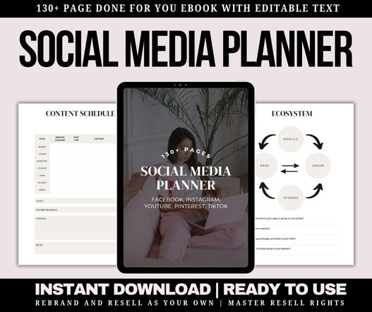 Done For You Editable Social Media Planner Printable - Content Planner for Instagram, Youtube, Pinterest, TikTok, Facebook with Master Resell Rights. Your Complete Toolkit for Streamlined Content Creation.