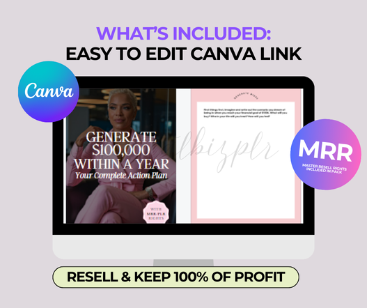 Unlock your potential to earn a passive income this year with "Generate 100K This Year: Action Plan Marketing." This comprehensive guide is designed to help you navigate the world of digital marketing using essential tools like private label rights (PLR) and master resell rights (MRR). You'll receive done-for-you Canva templates along with bonus products that make getting started easy. With our faceless marketing strategies and guidance on reselling PLR digital products, you'll be well on your way to creating a sustainable income stream. Don't miss this opportunity to learn how to elevate your marketing efforts with actionable steps that can lead you to financial freedom. Start your journey to success today!