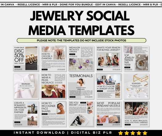 Done For You Beige Jewelry/Jewellery Social Media Templates With Resell Rights.