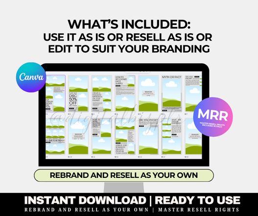 This digital product comes resell rights which means you can rebrand and resell this product as your own and keep 100% of the profits. Please check individual listings to see if they come with MRR or PLR