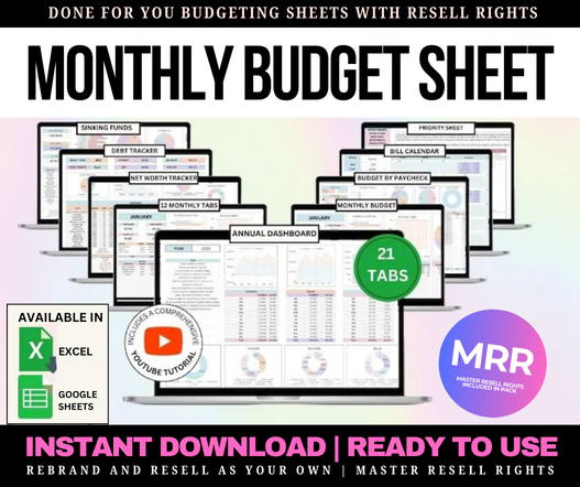 Monthly Budget Spreadsheet (Google Sheets & Excel)