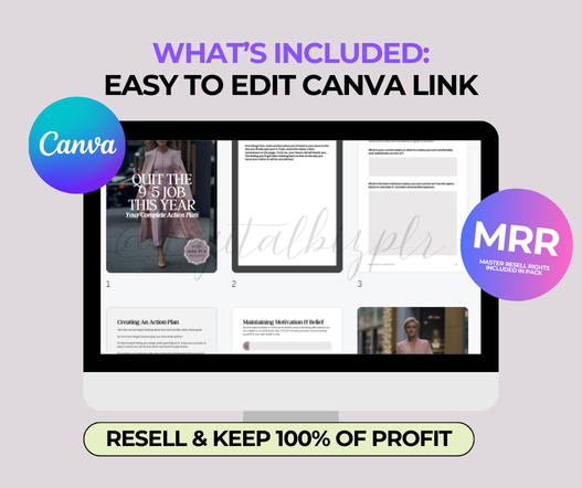 - Edit, tweak and customise in Canva, export as PDF and start selling as your own with no attribution required