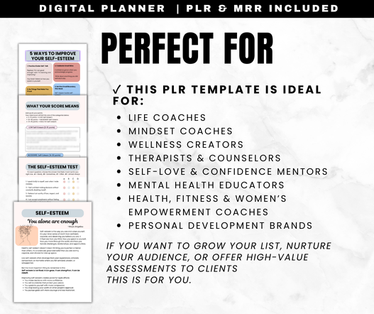 Self-Esteem Test Lead Magnet Template PLR - 12-Page Client Assessment & Building Guide for Coaches, Therapists & Wellness Professionals with Master Resell Rights