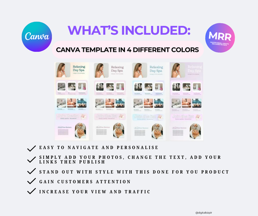- Edit, tweak and customise in Canva, export as PDF and start selling as your own with no attribution required