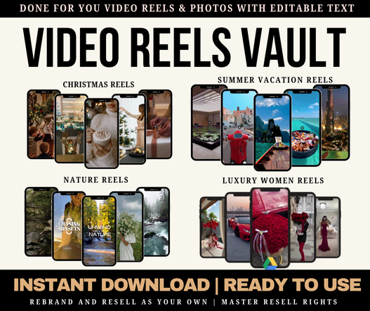 In this stunning collection, you will receive over 1000+ aesthetic videos showcasing breath-taking christmas videos, summer vacation videos, nature reels and luxury womens reels.